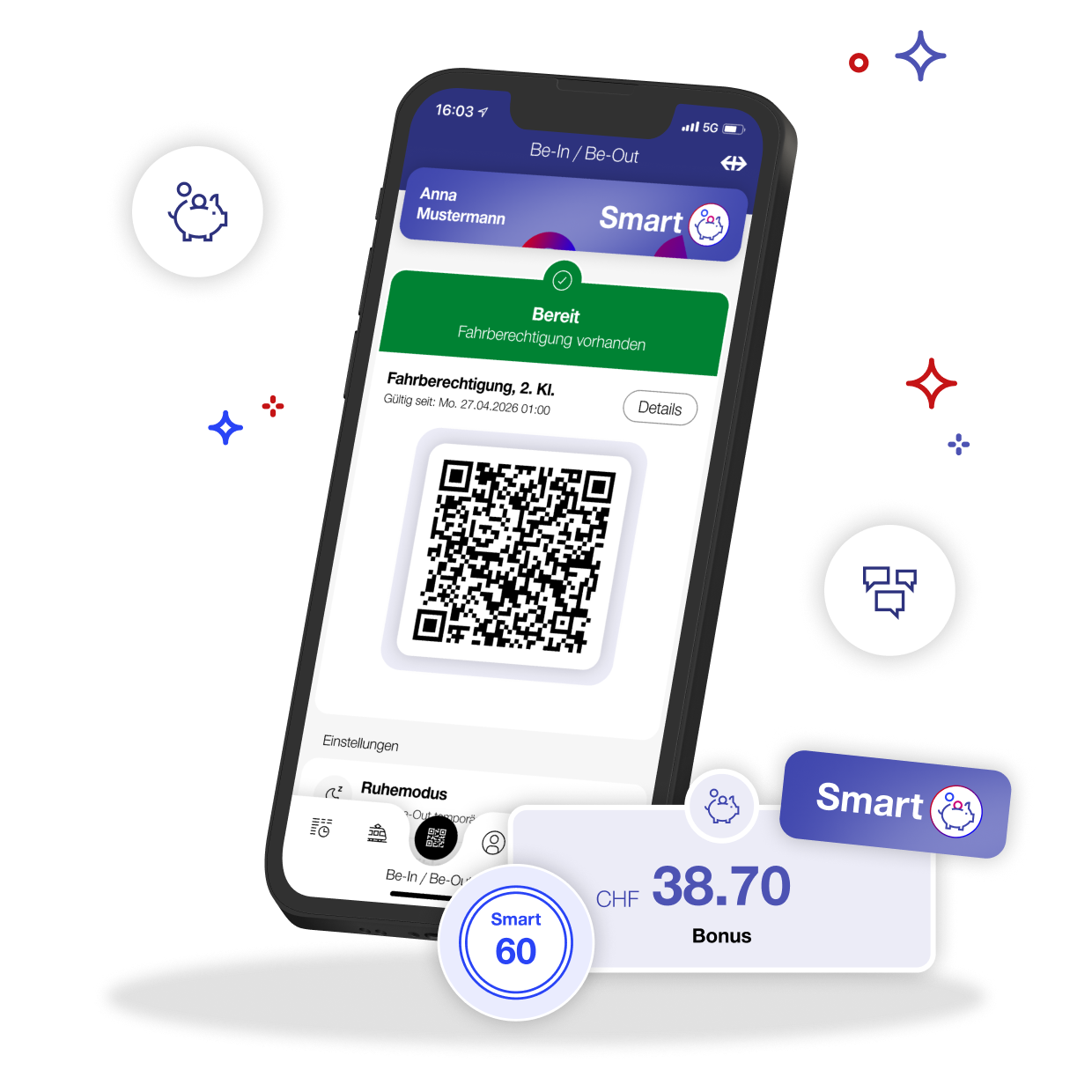 Bonus bei jeder Reise mit Zug, Bus und Tram.
